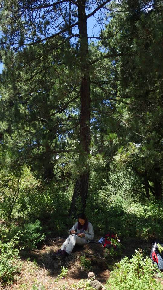 Libertad takes measurements of cones and leaves.