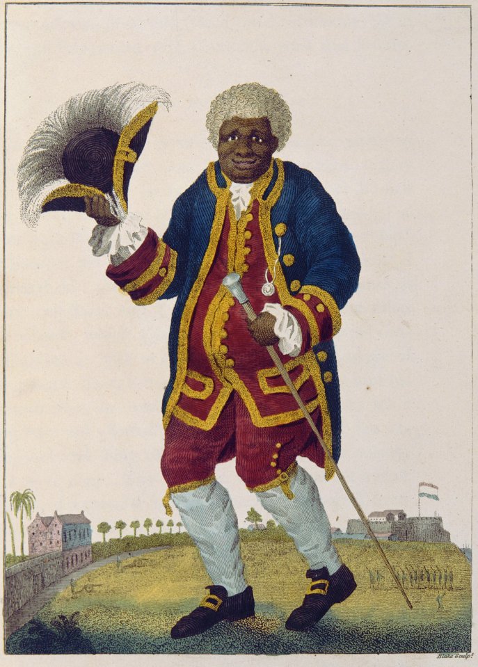 “The Celebrated Graman Quacy”, illustration by William Blake in Capt. John Gabriel Stedman, 1796 Narrative, of a five-years’ expedition against the revolted Negroes of Surinam. This image represents copy 2, currently held by the Huntington Library and Art Gallery.