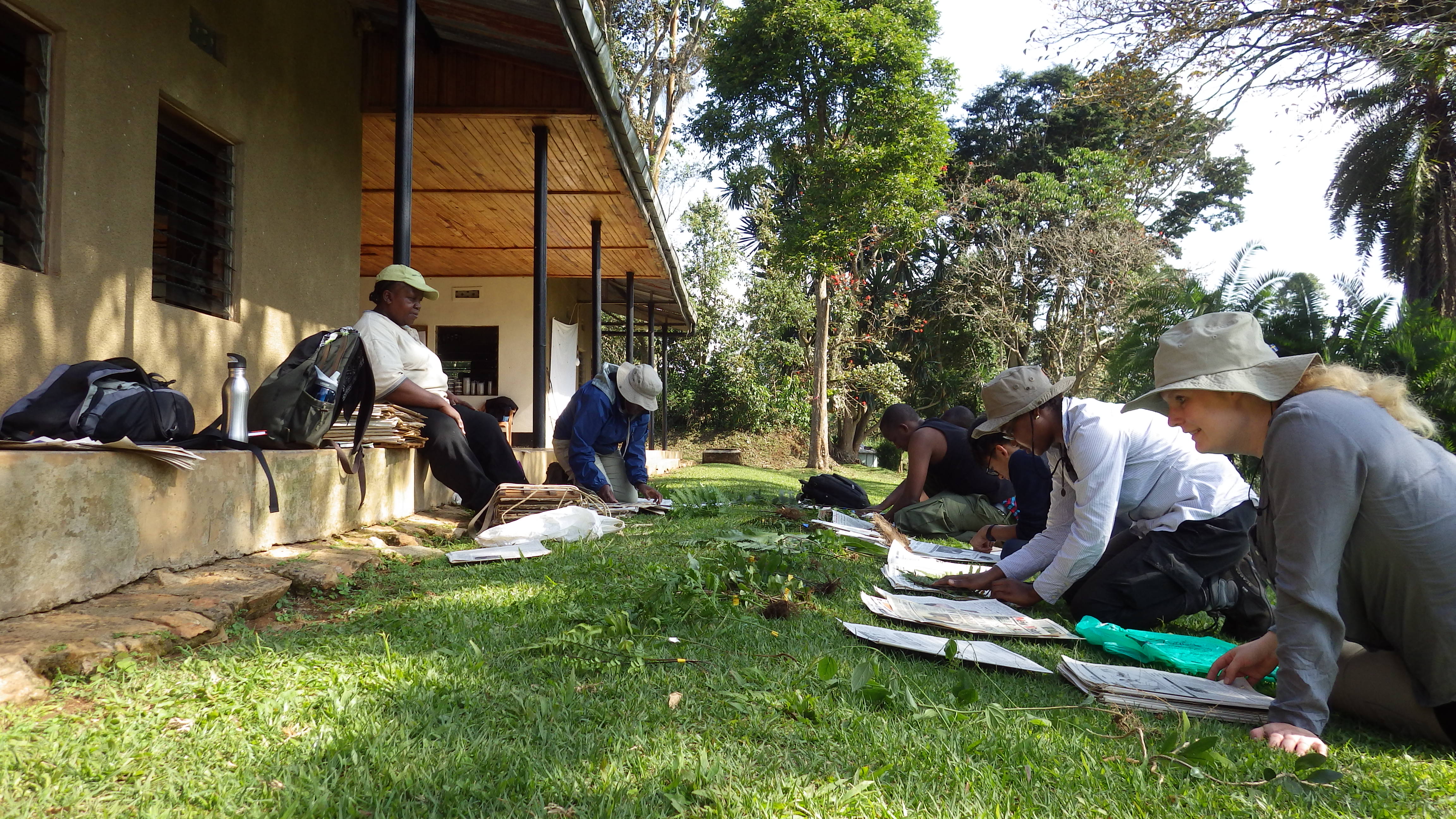 The liana team surveying in 2015 (Takuji Usui, Julian Baur and first author Telma Laurentino). Bridget Ogolowa (far left) did not participate in the study. Photo by Line Holm Andersen.