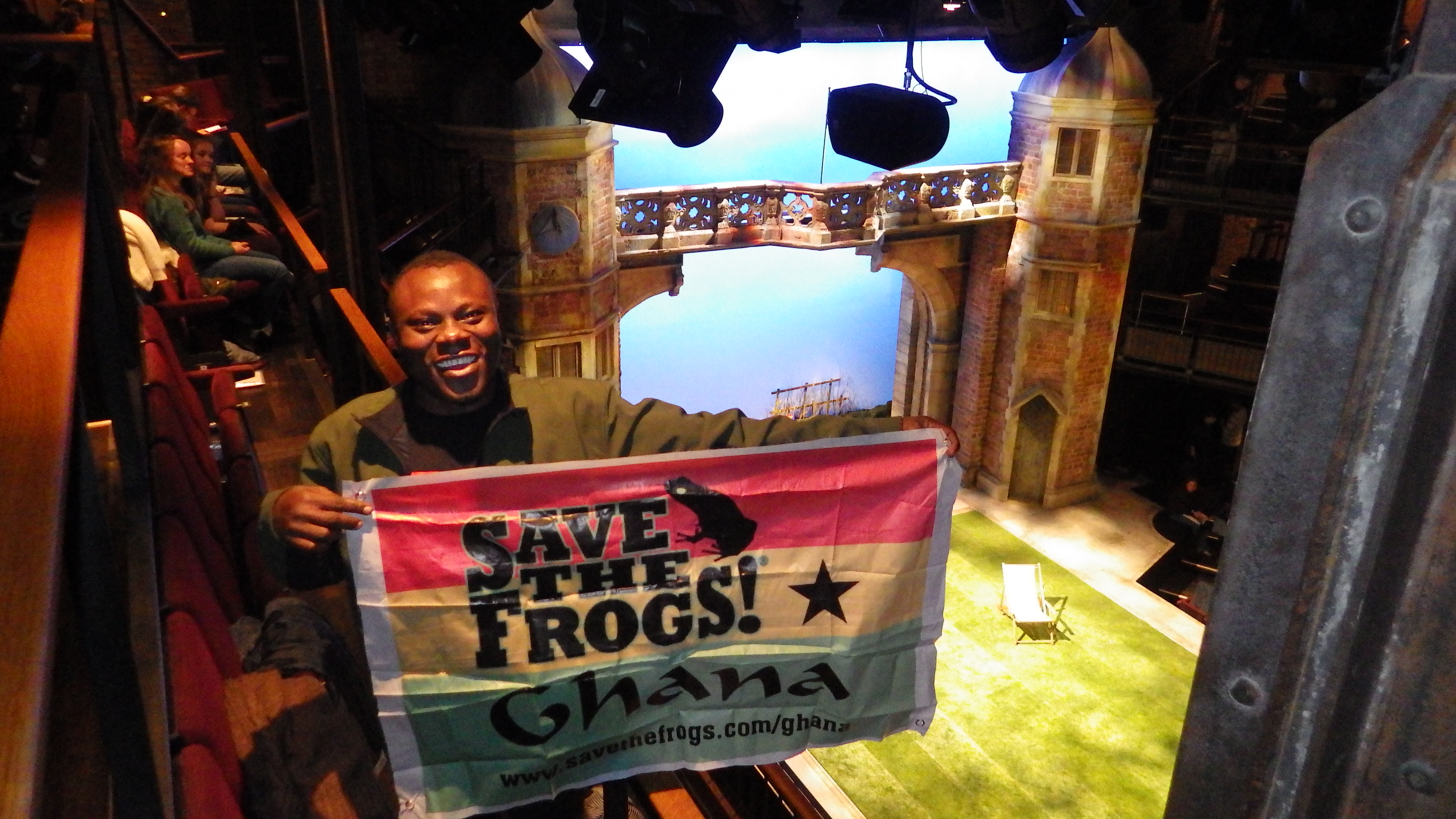 Wherever Gilbert goes, even in the theatre in Stratford-upon-Avon, he wants to tell people about frog conservation.